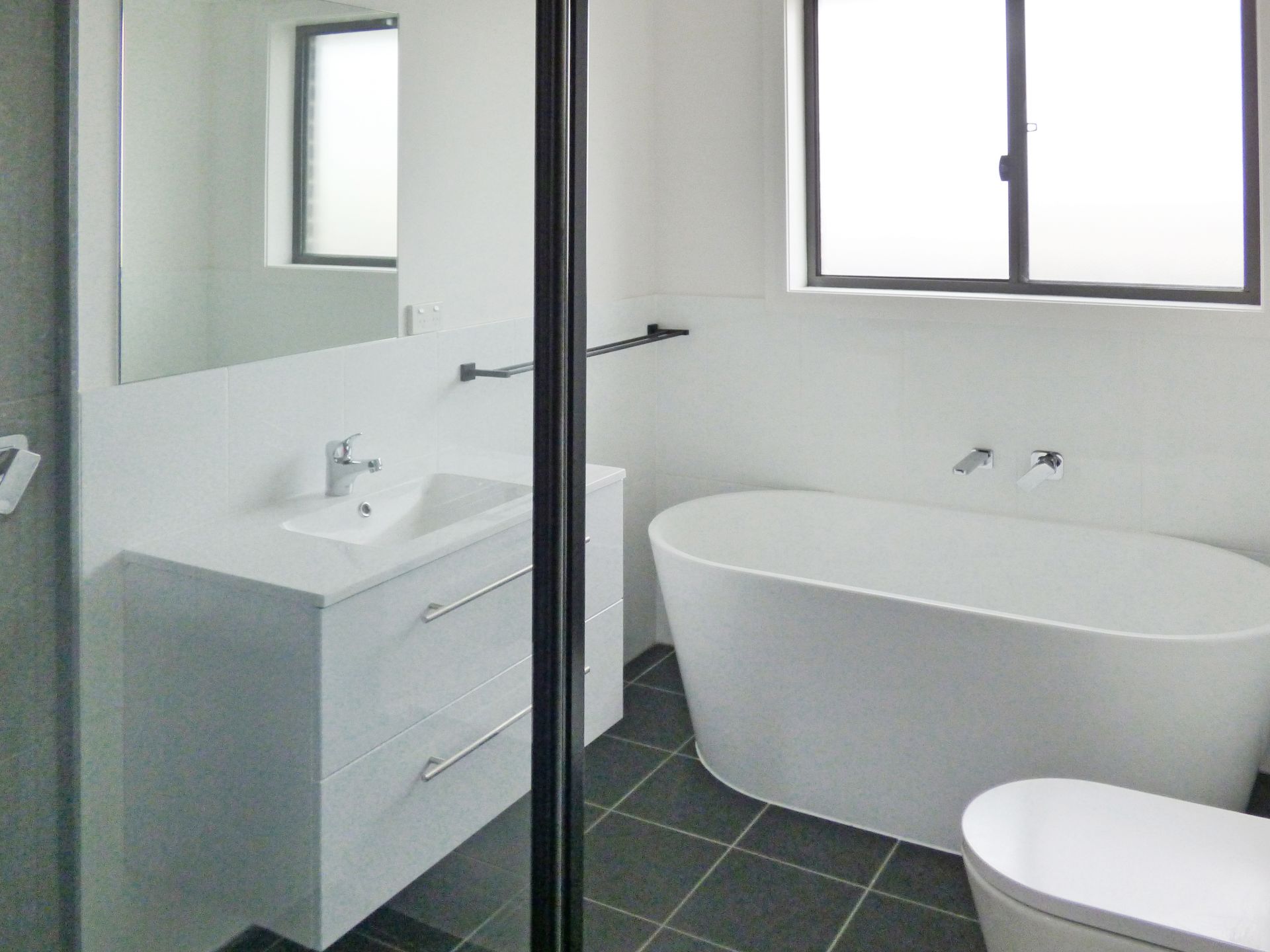 - Family bathroom with bath