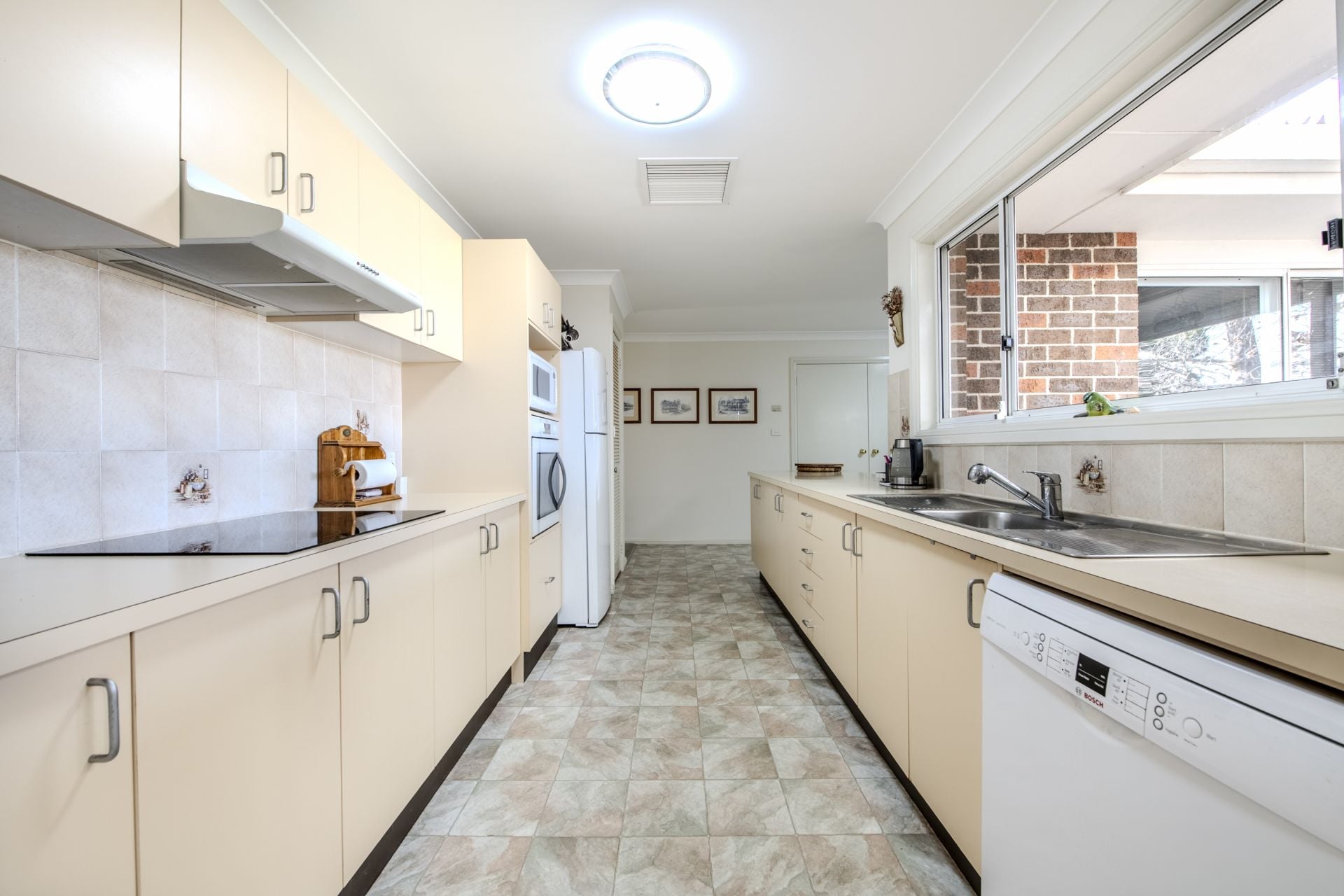 - Modern galley style kitchen with updated appliances and walk in pantry