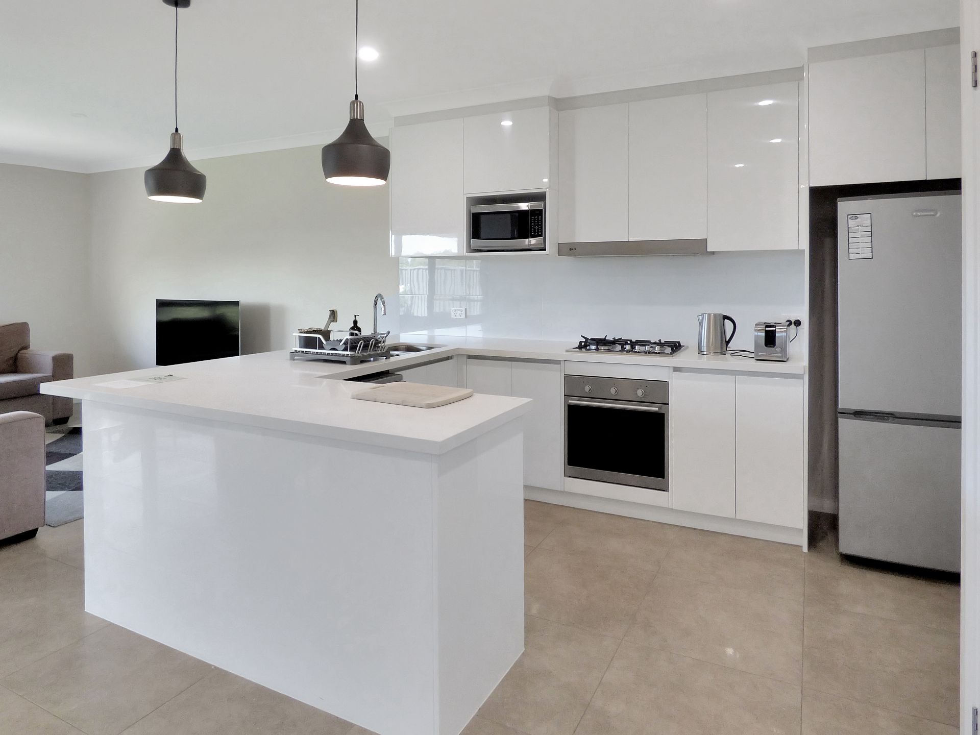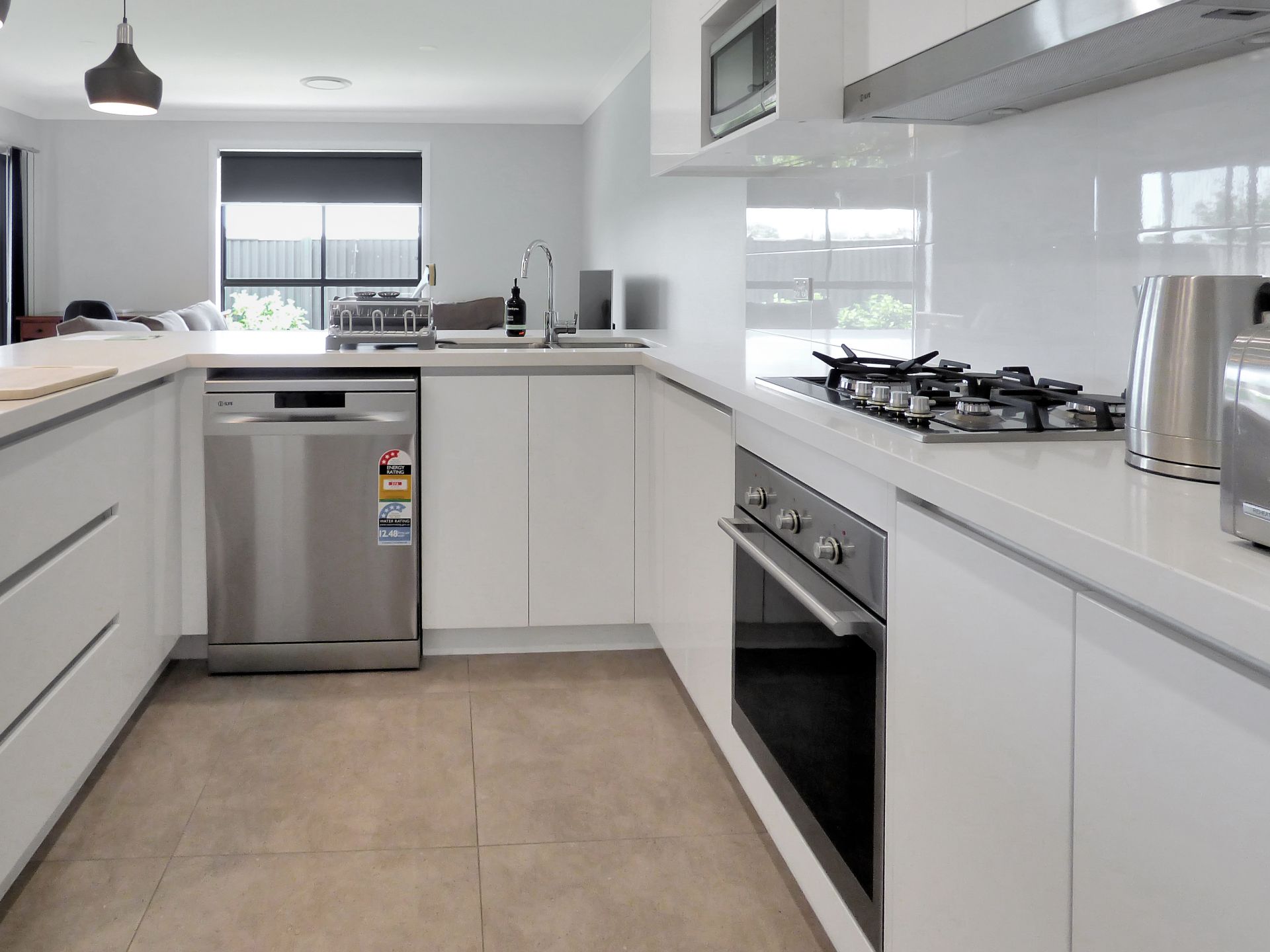 - Modern kitchen with stone bench tops and ILVE stainless steel appliances