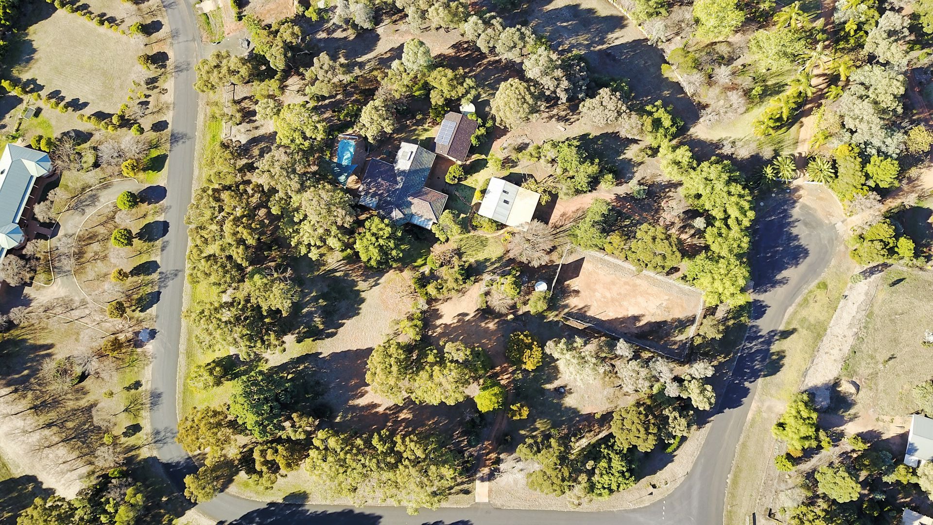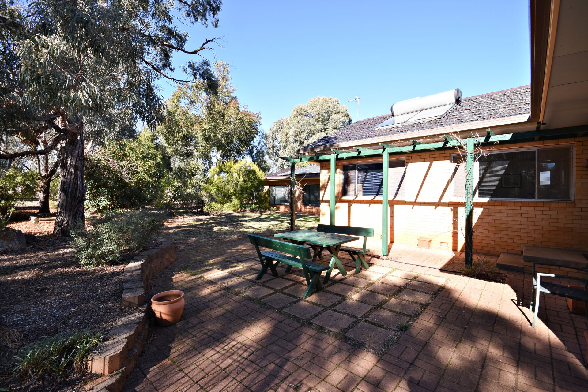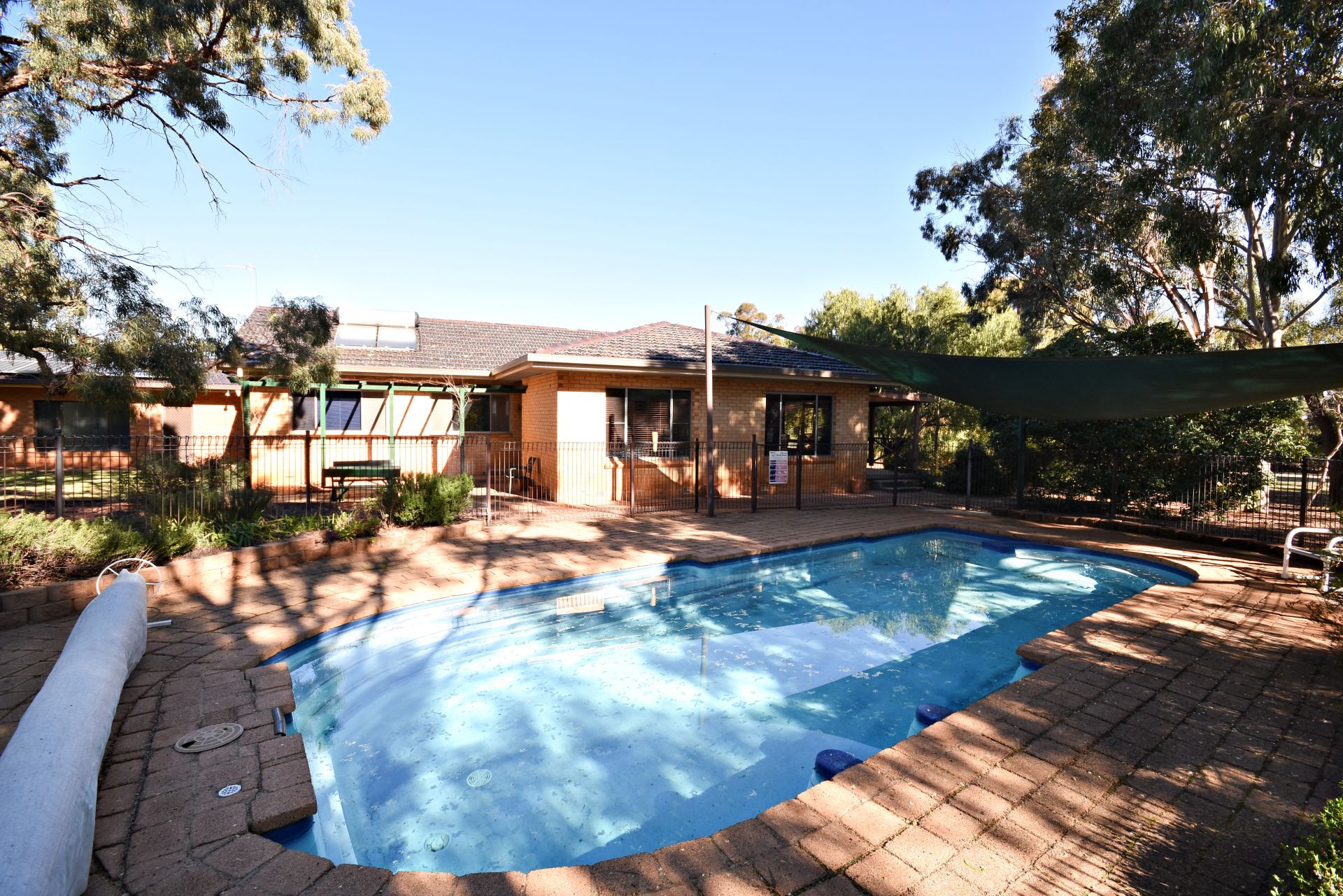 - Large pool with shade sail, bush tennis court with practice wall