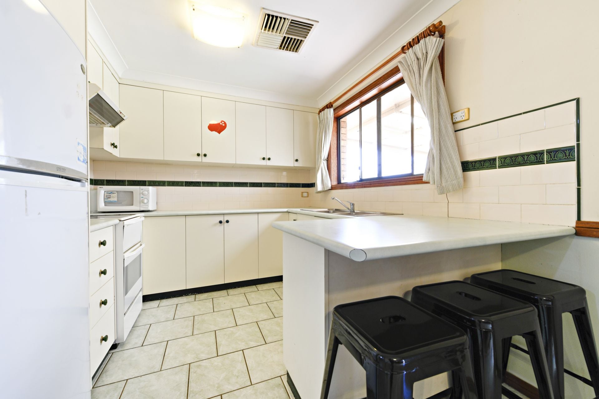 -Electric cooking, double sink, breakfast bar