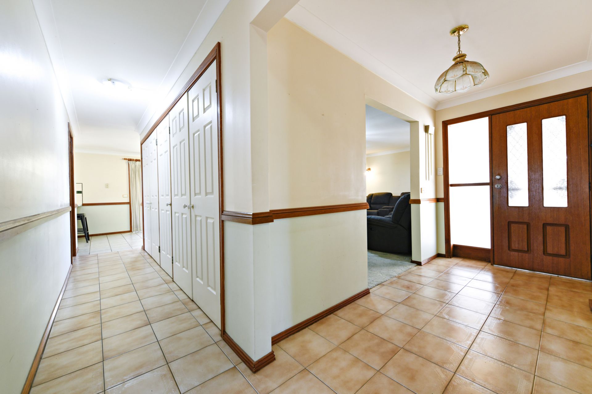 -Entire wall of storage cupboards in hall