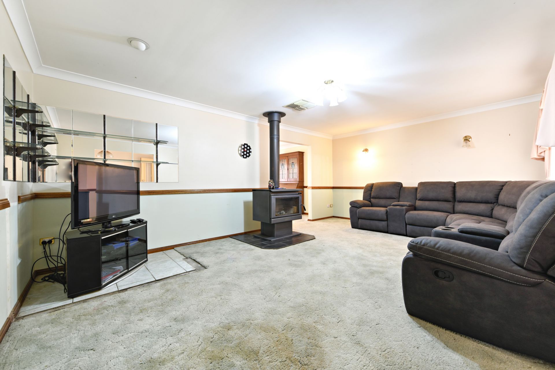 -Spacious lounge room with wood fire
