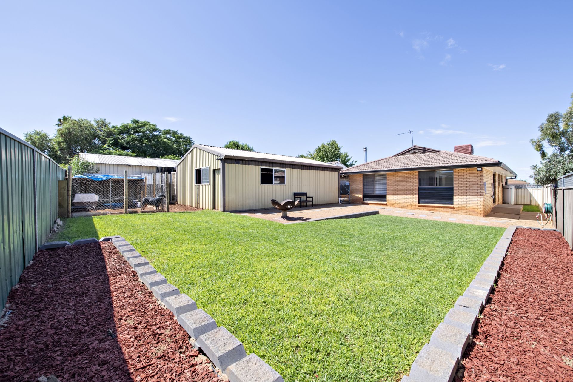 - Neat and tidy back yard with chicken coop