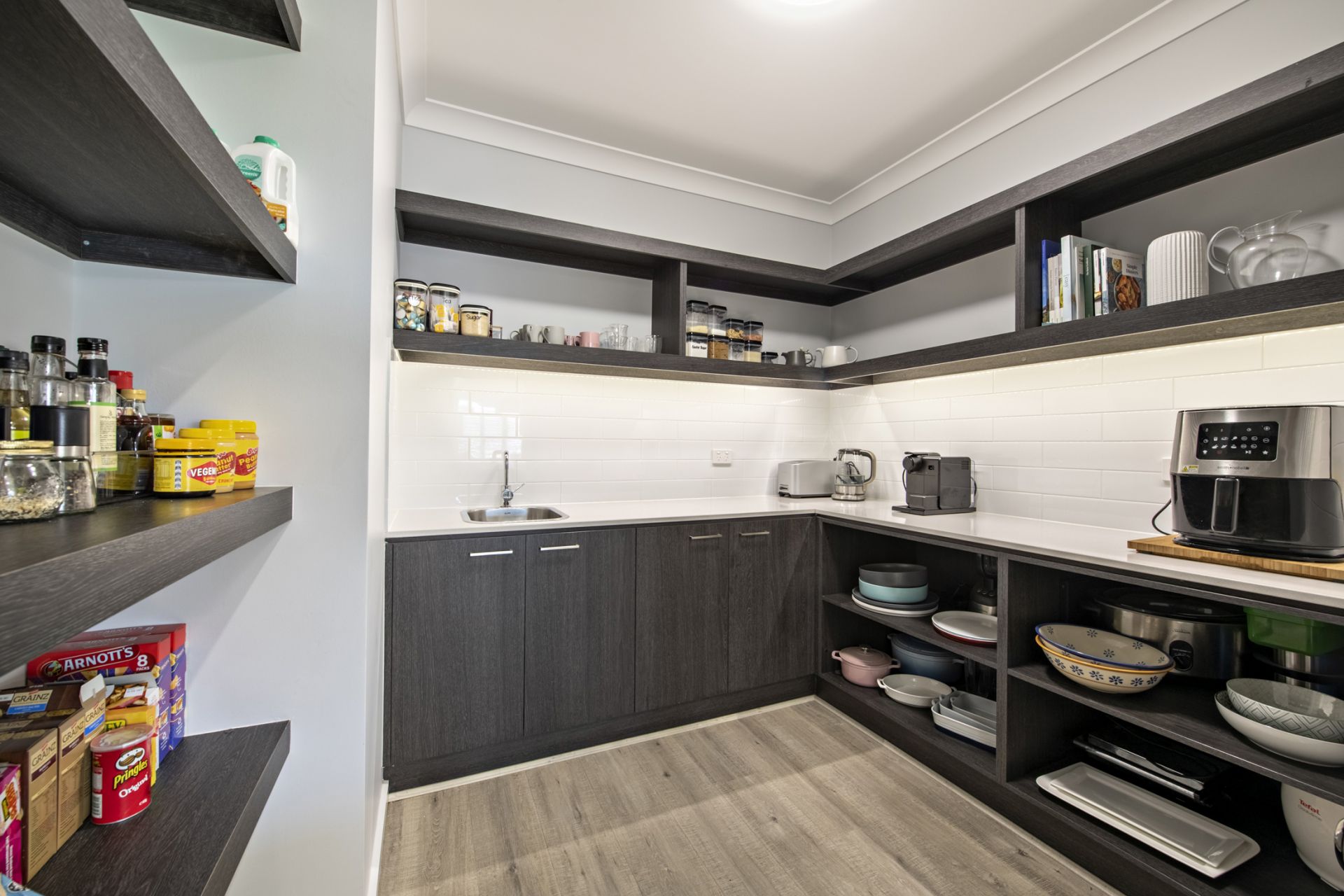 - Large butlers pantry with sink, Caesarstone & impressive storage