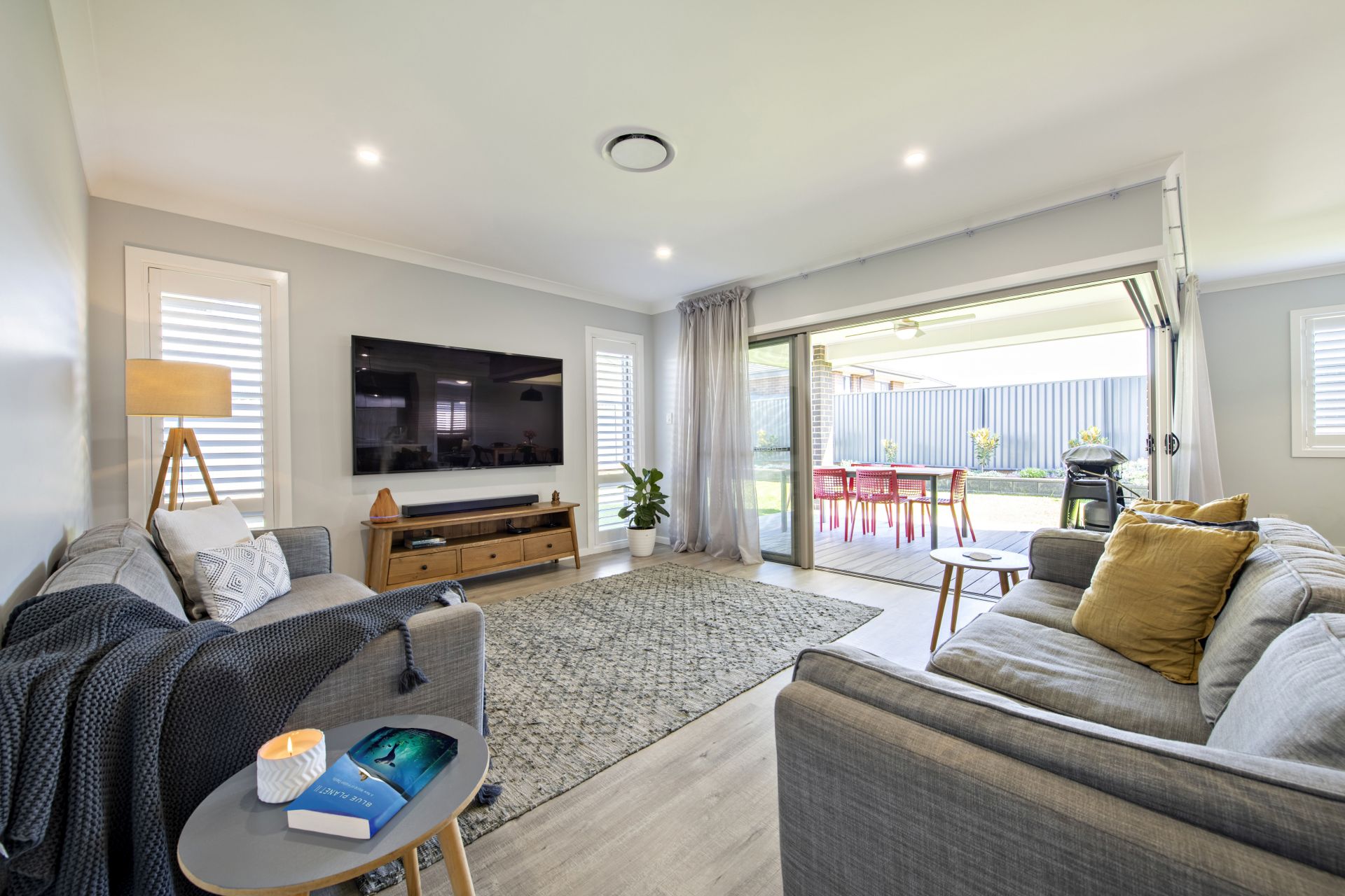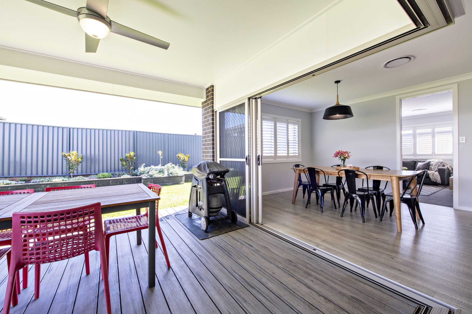 - Open living zone flows to outdoors through stacking doors