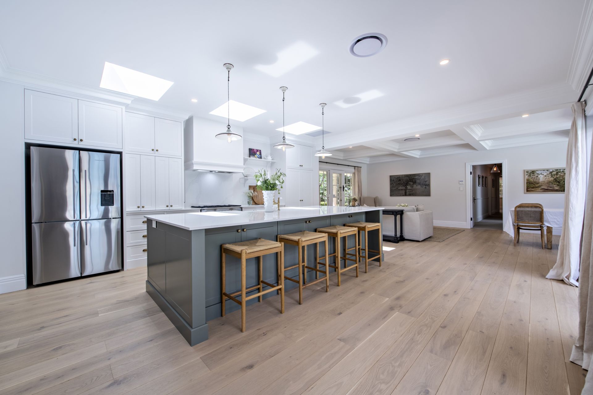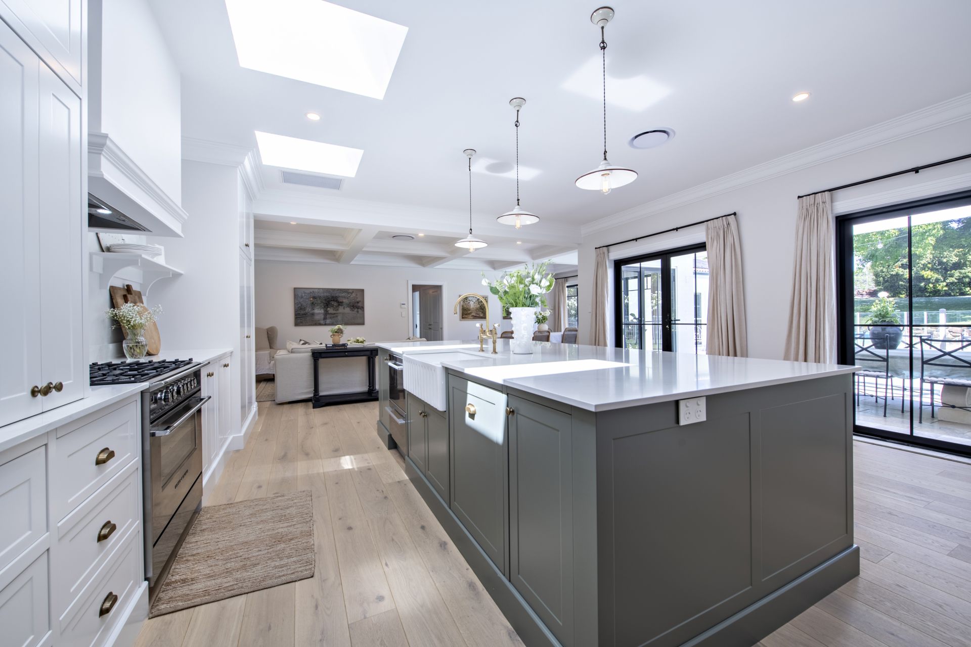 - Gourmet chef's kitchen with expansive stone island bench and quality appliances