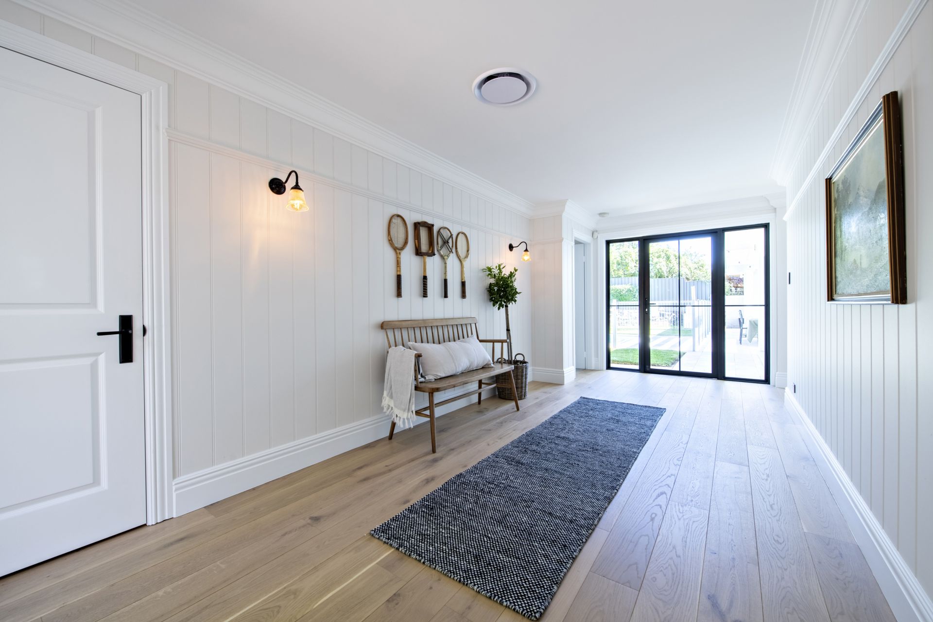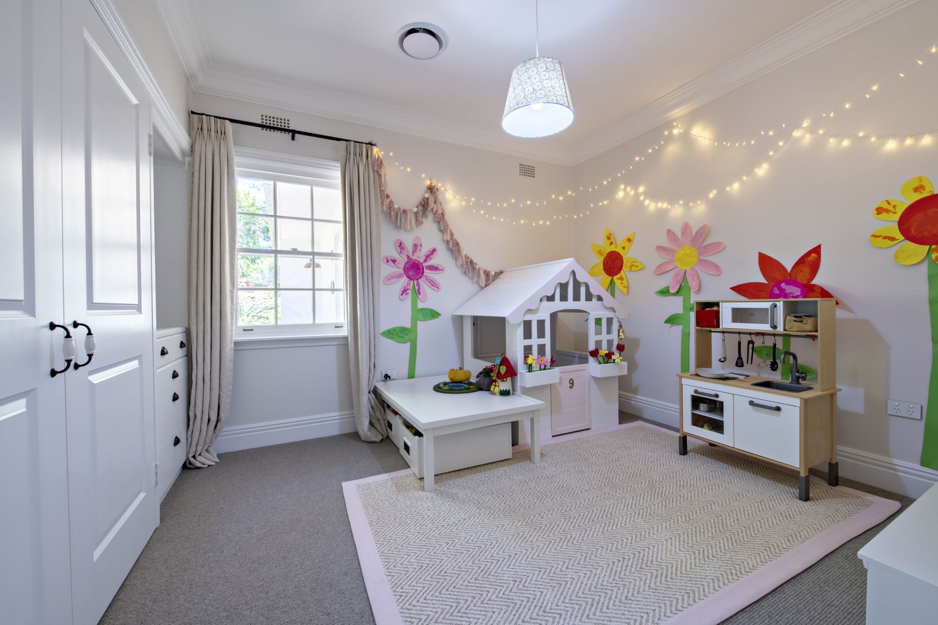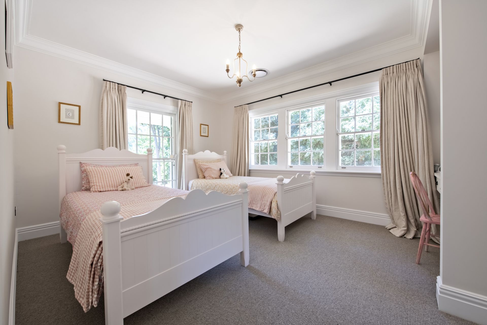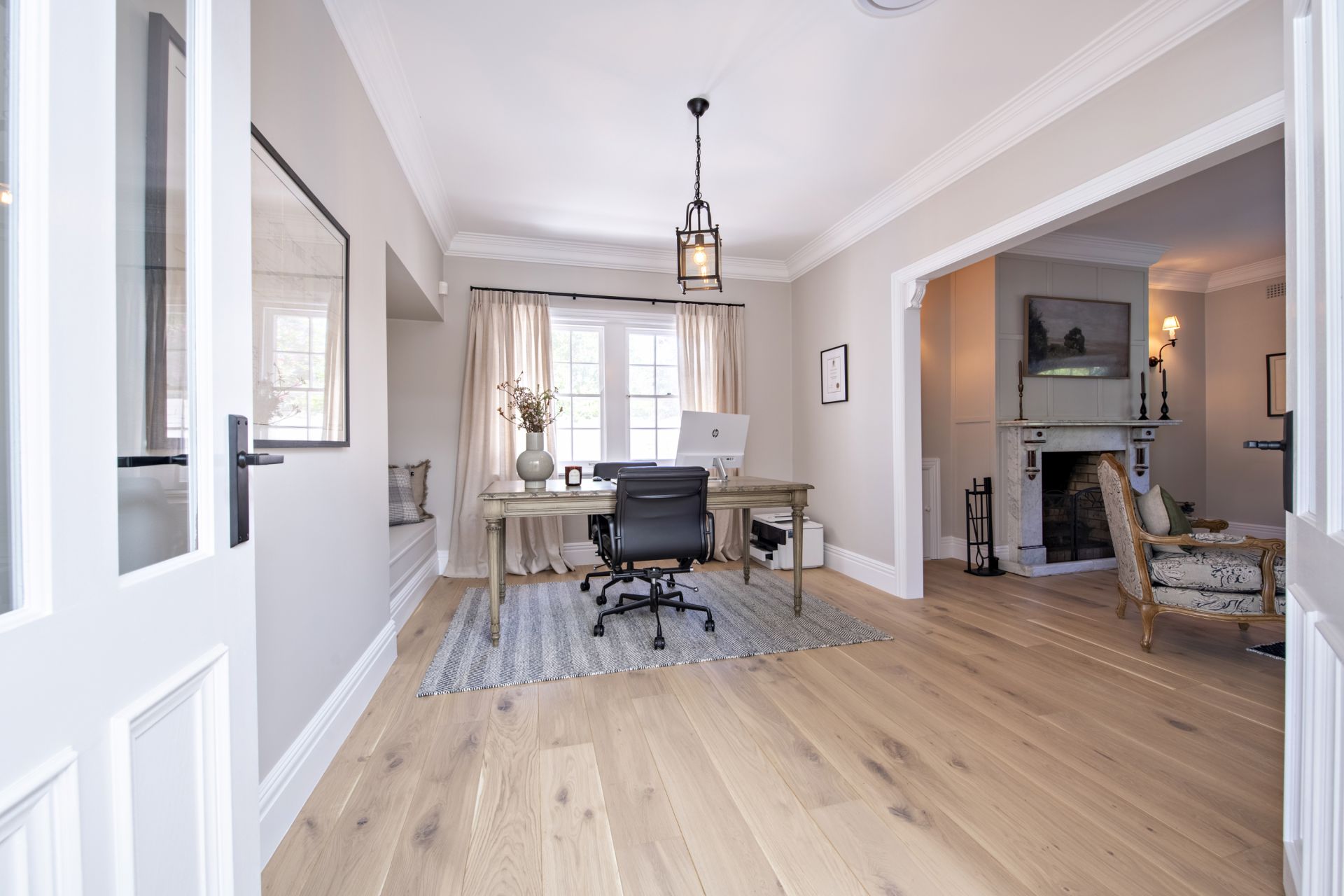 - Finest quality curtains, wool carpet and floating timber floors