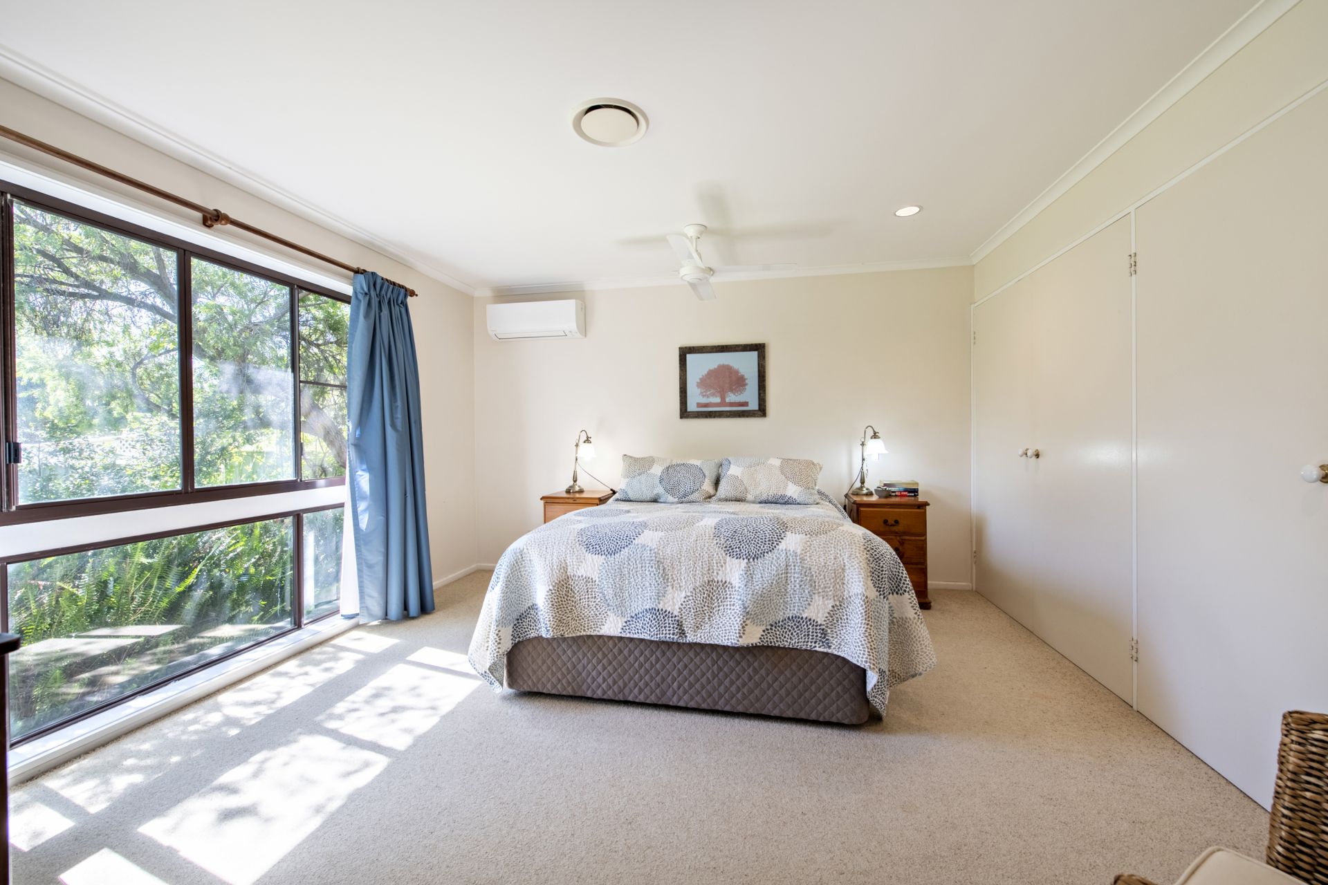- Main bedroom with split system a/c unit, walk-in robe and ensuite