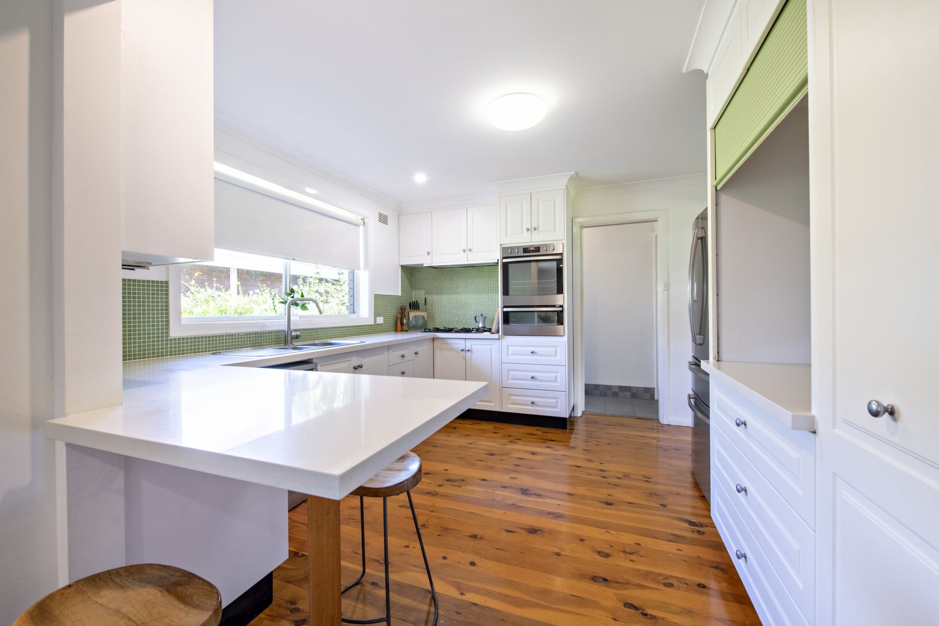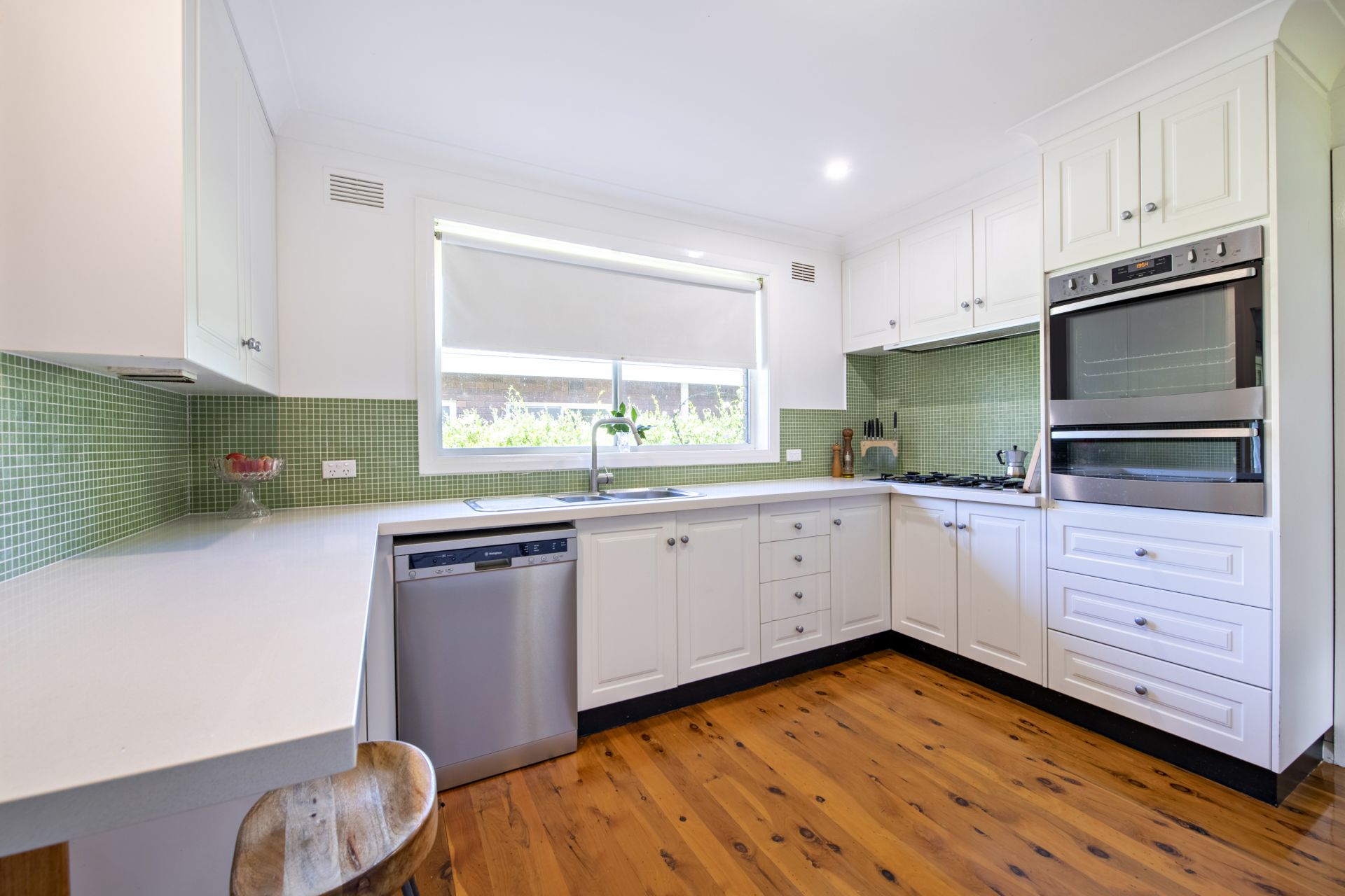 As soon as you step inside, you'll be struck by the home's vibrant character. The open plan living areas are spacious and bright, with large windows that let in plenty of natural light and offer a lovely leafy aspect. The stone kitchen is a true delight, with quality appliances and great storage.