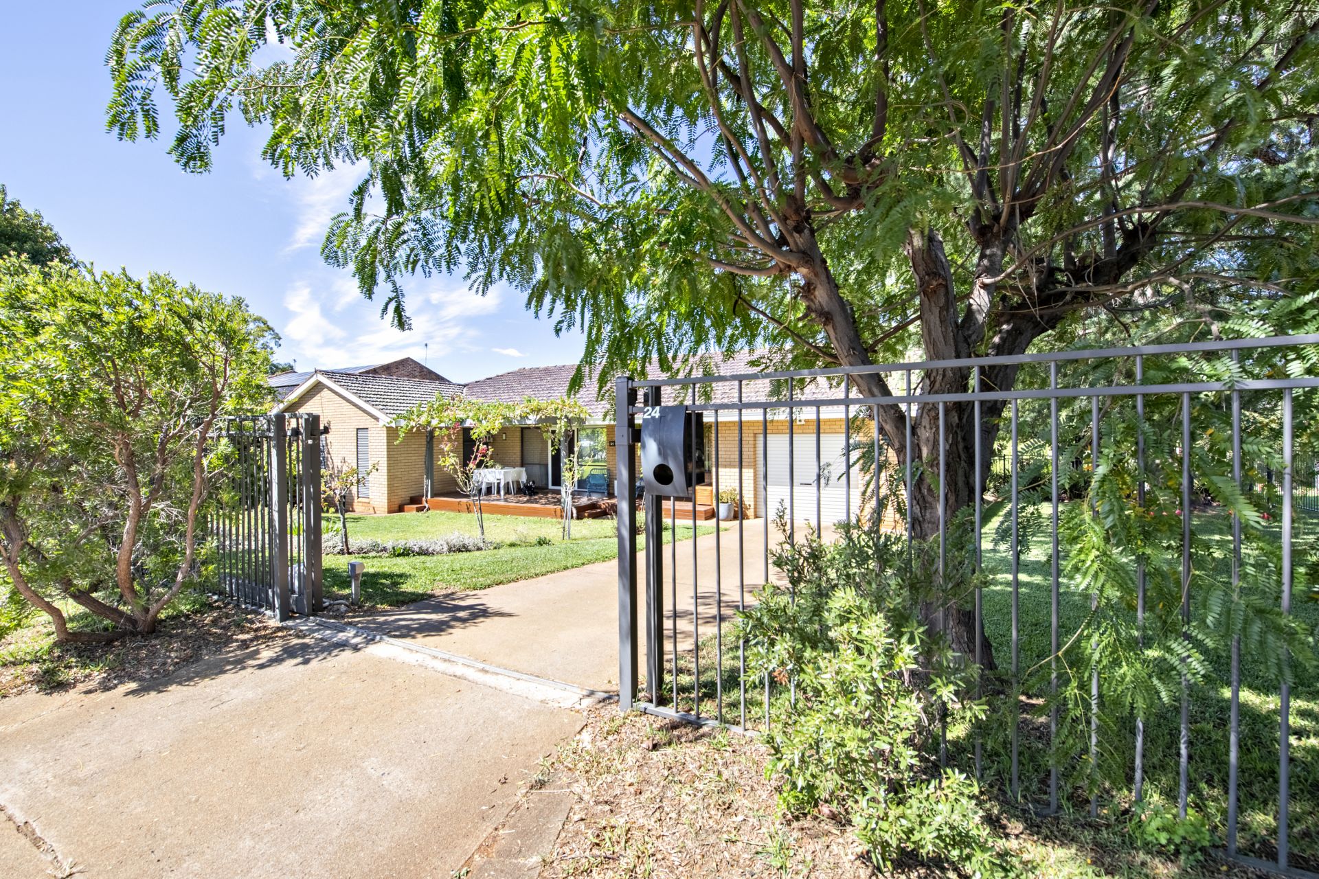 - Secure yard and leafy gardens with automatic gate
