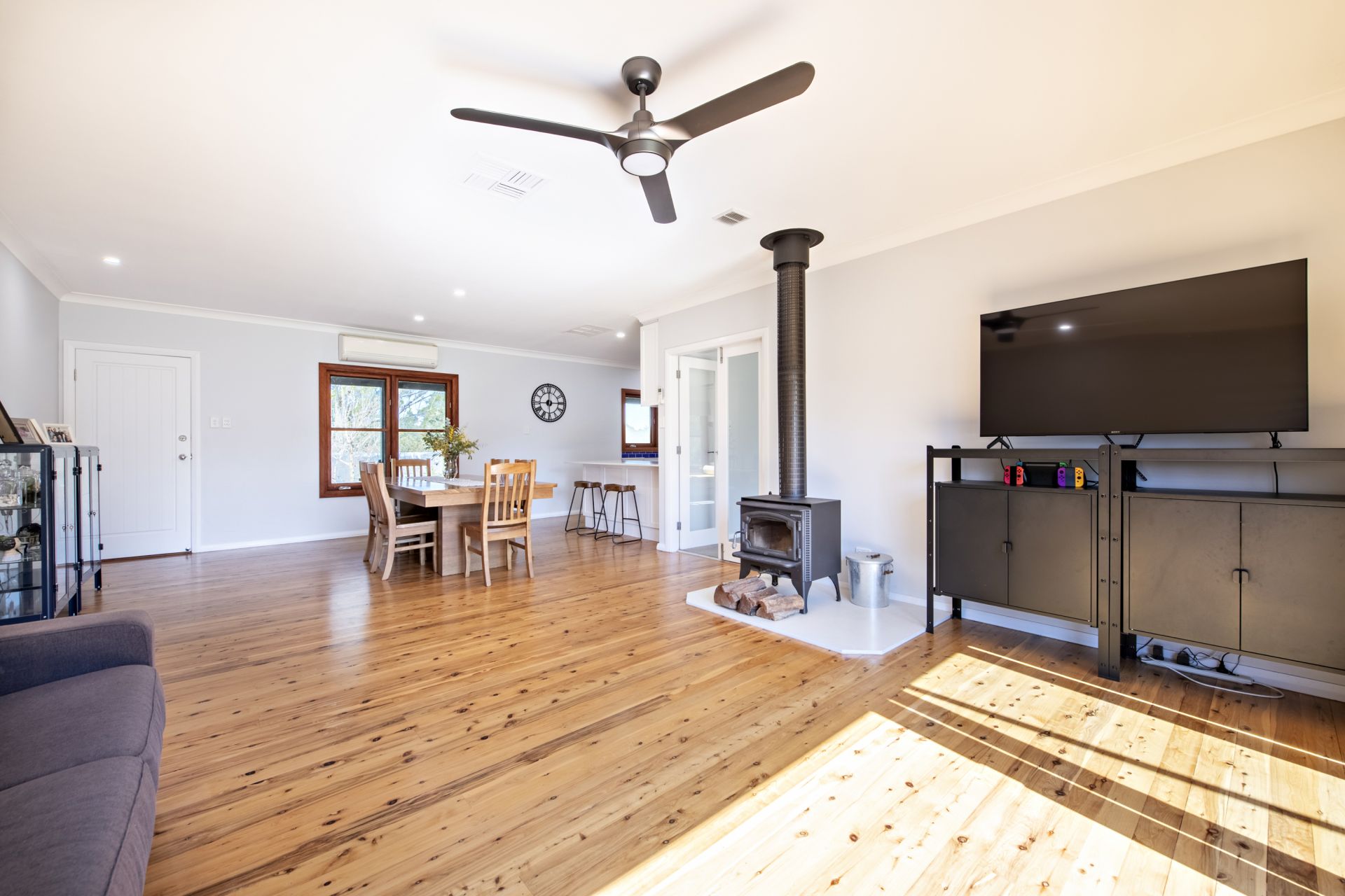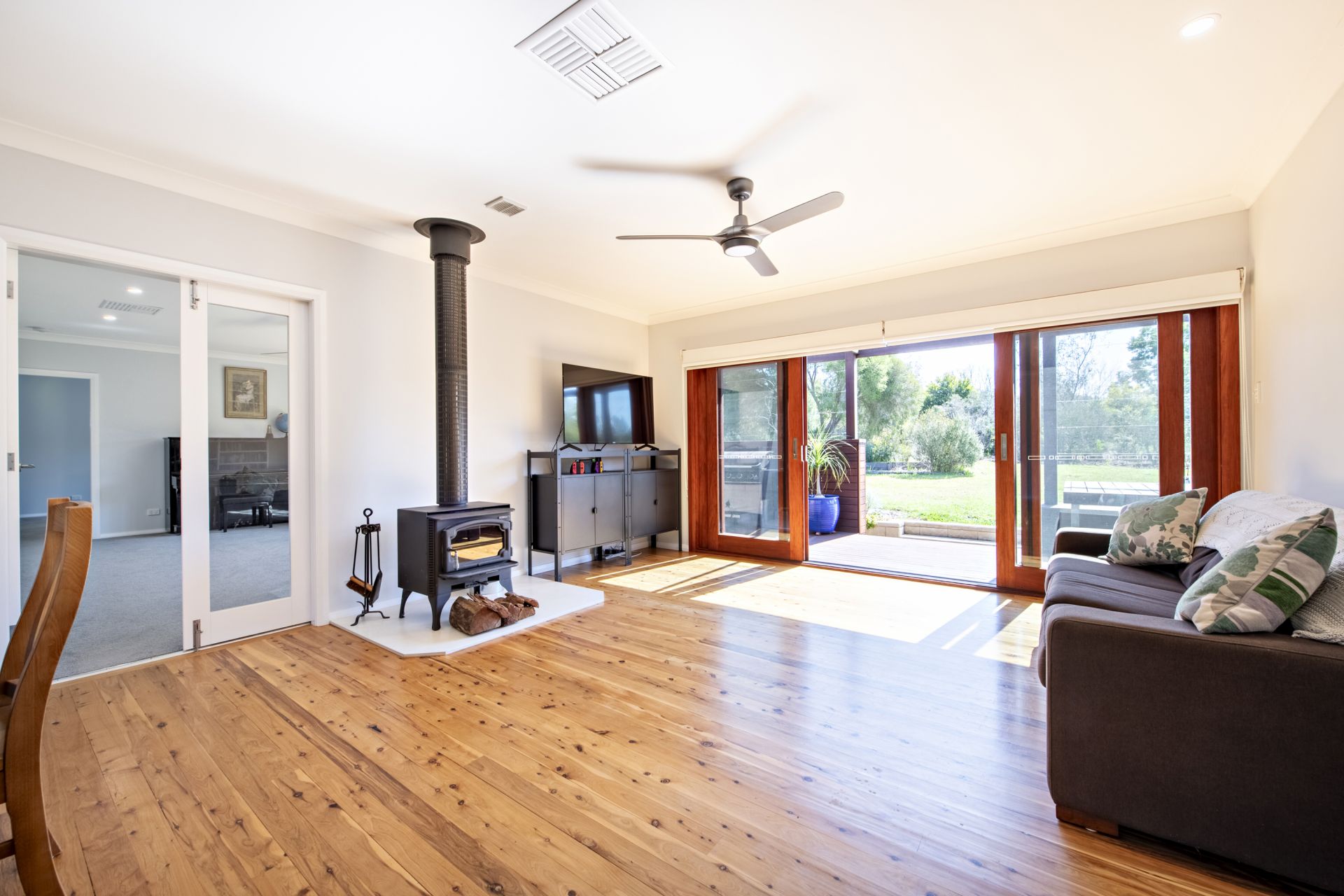 – Living room opens to verandahs both sides and includes slow combustion wood heater and reverse cycle split system a/c unit