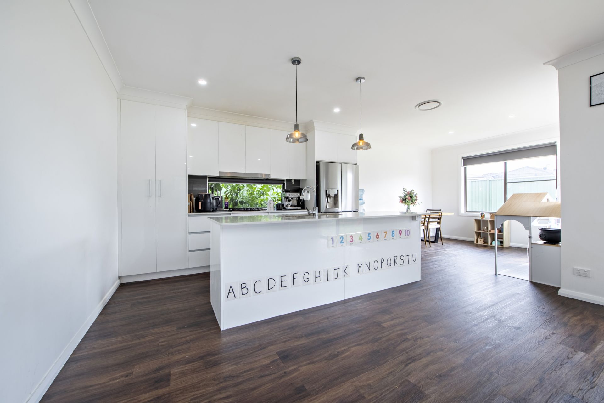 - Double pantry, breakfast bar, dishwasher