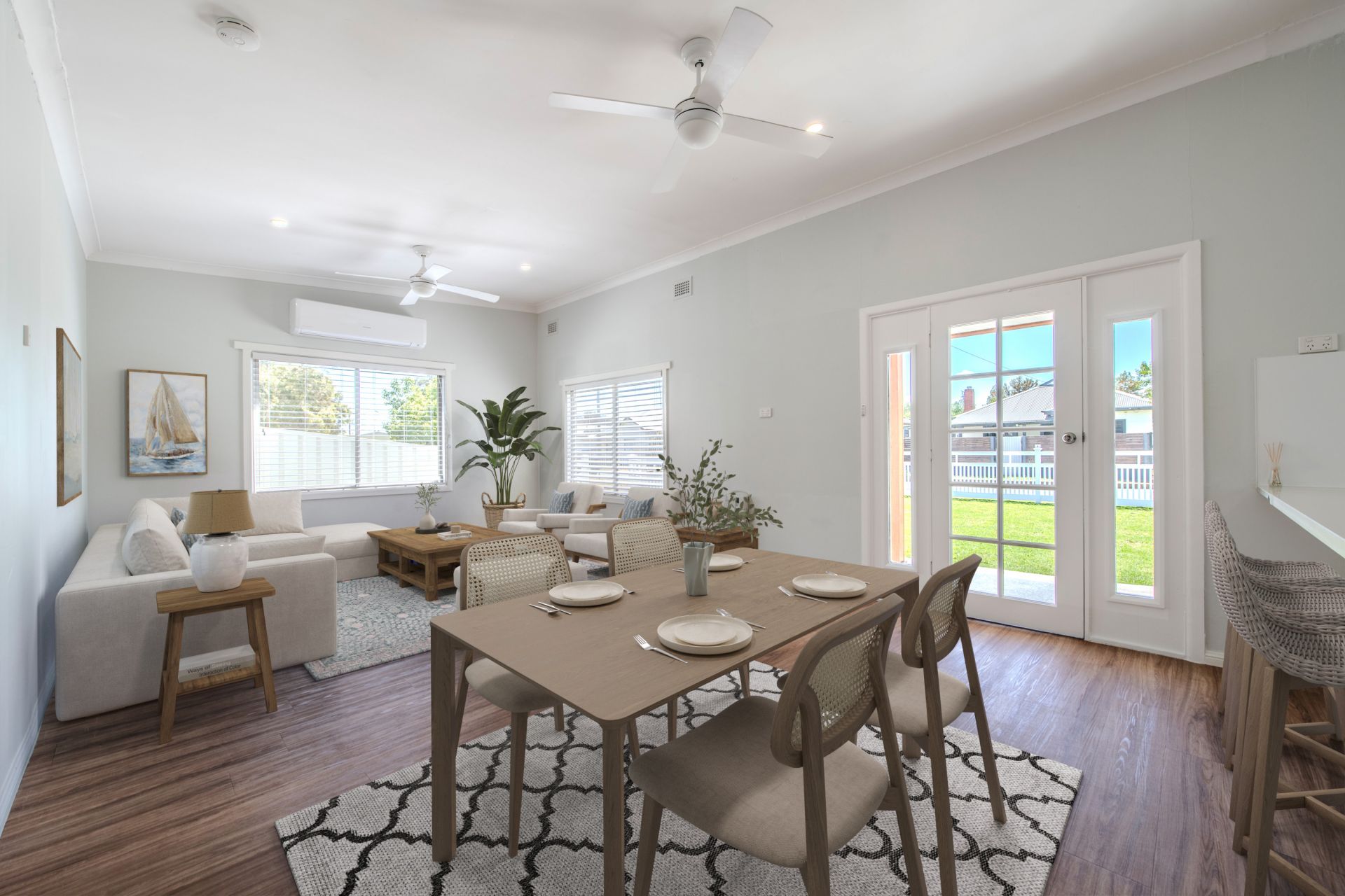 - Open plan living and meals area