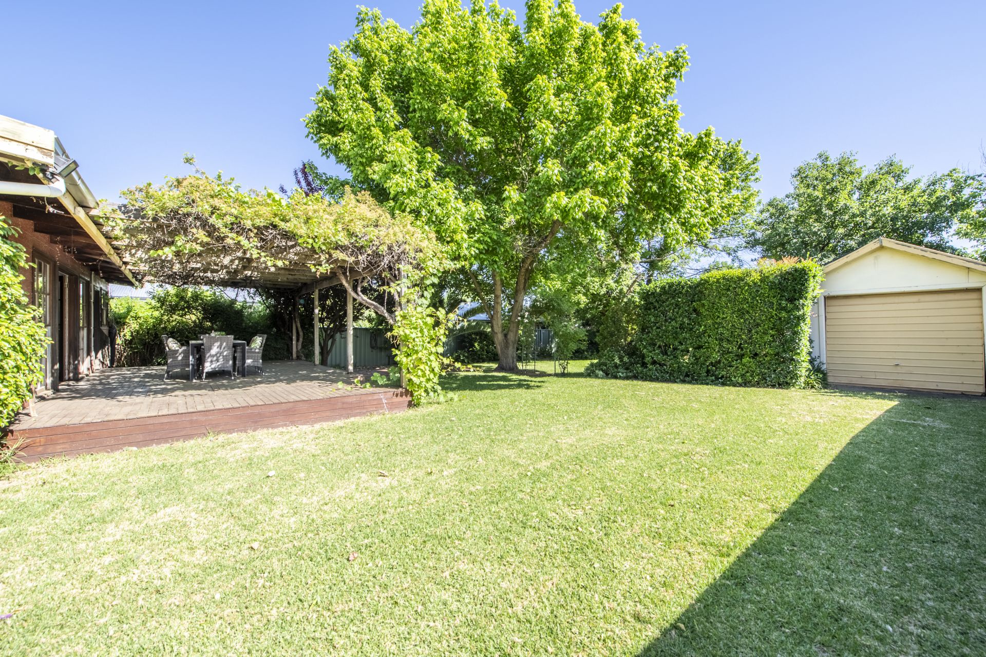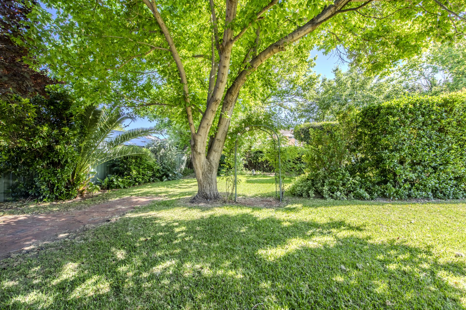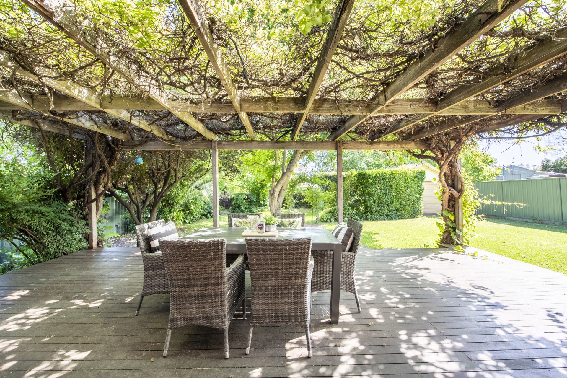 - Covered, leafy outdoor entertaining area