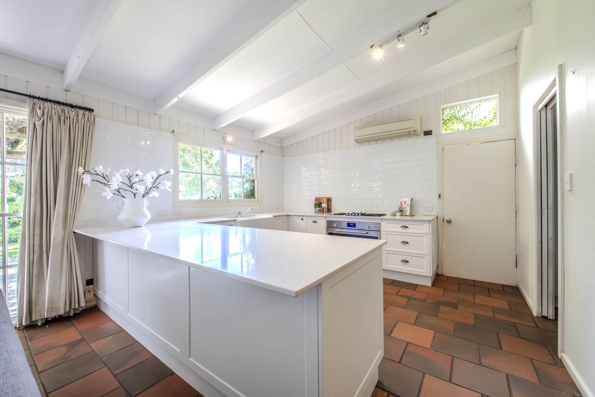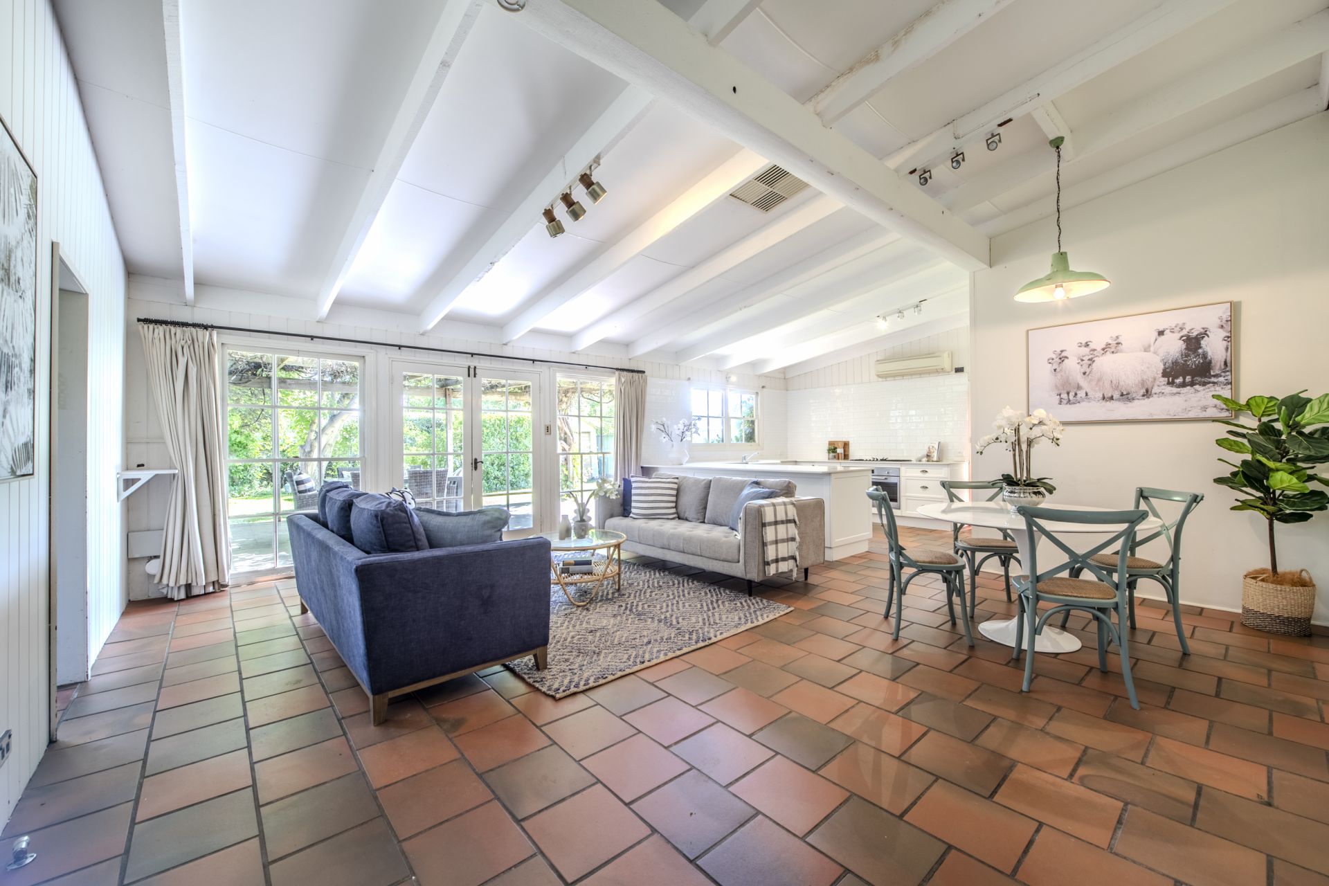 - Open-plan family and dining area with split system a/c unit