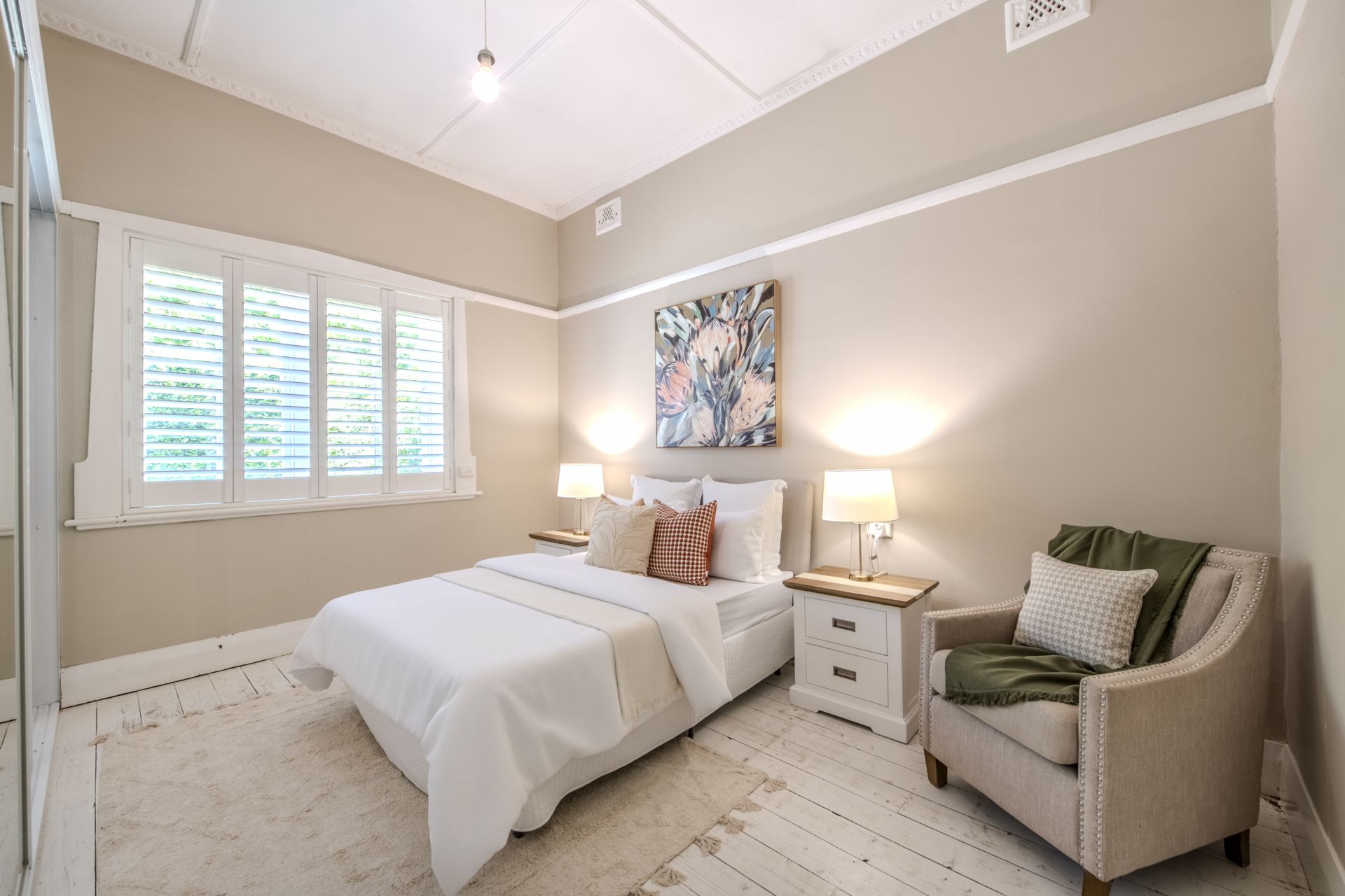 - Stunning original features: high ceilings, picture rails, stained glass windows, and timber floors