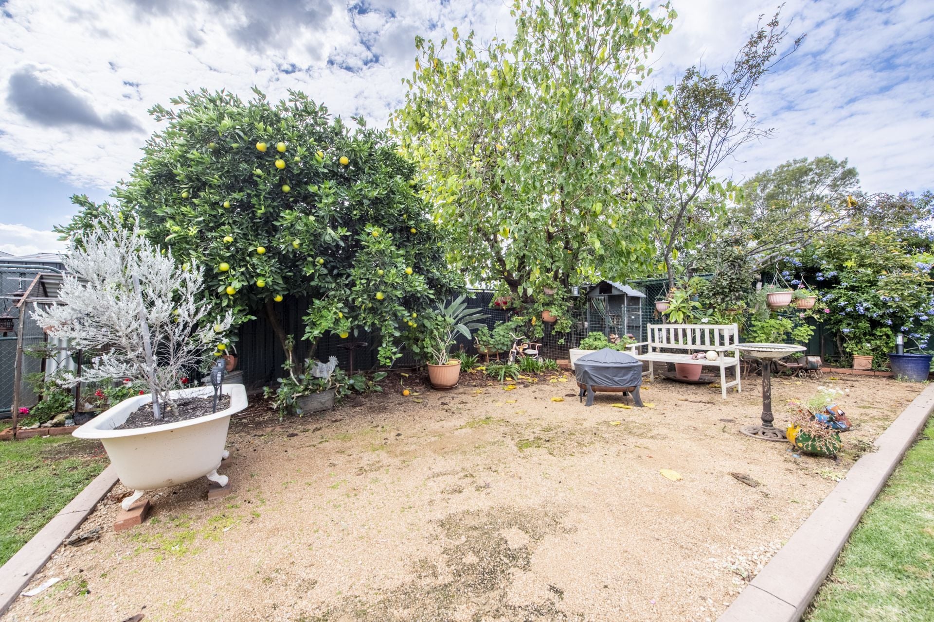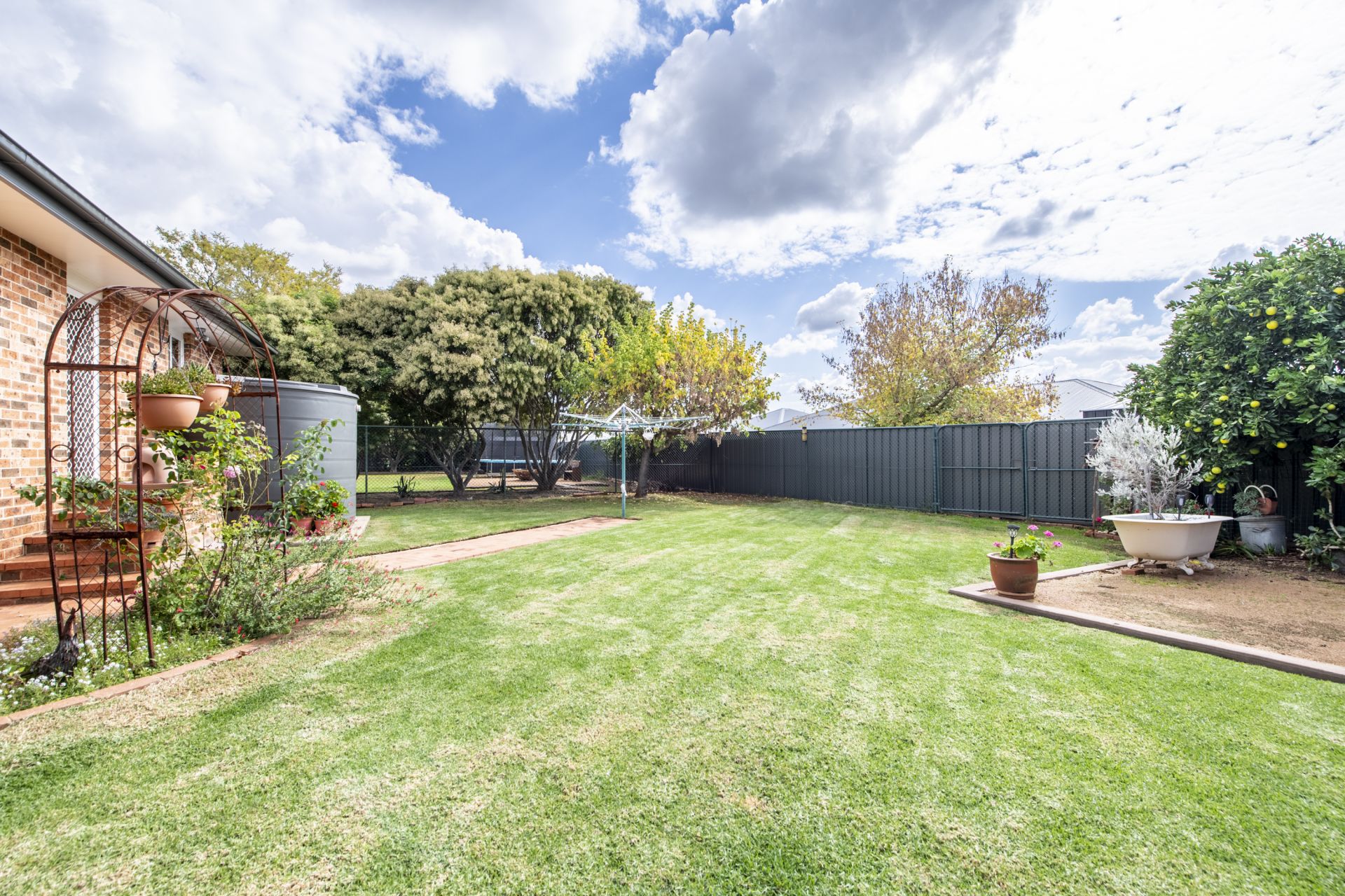 – Established north facing gardens and trees with watering system set on 1074 sq m