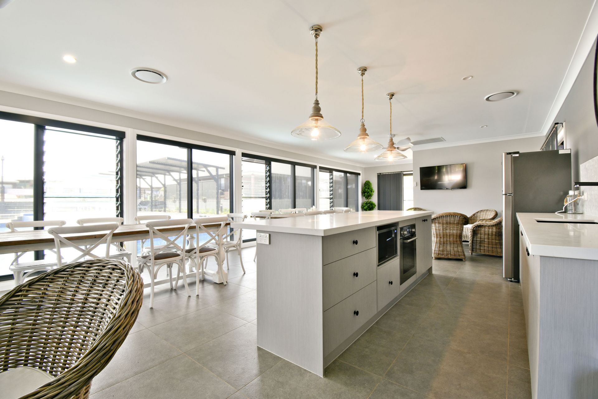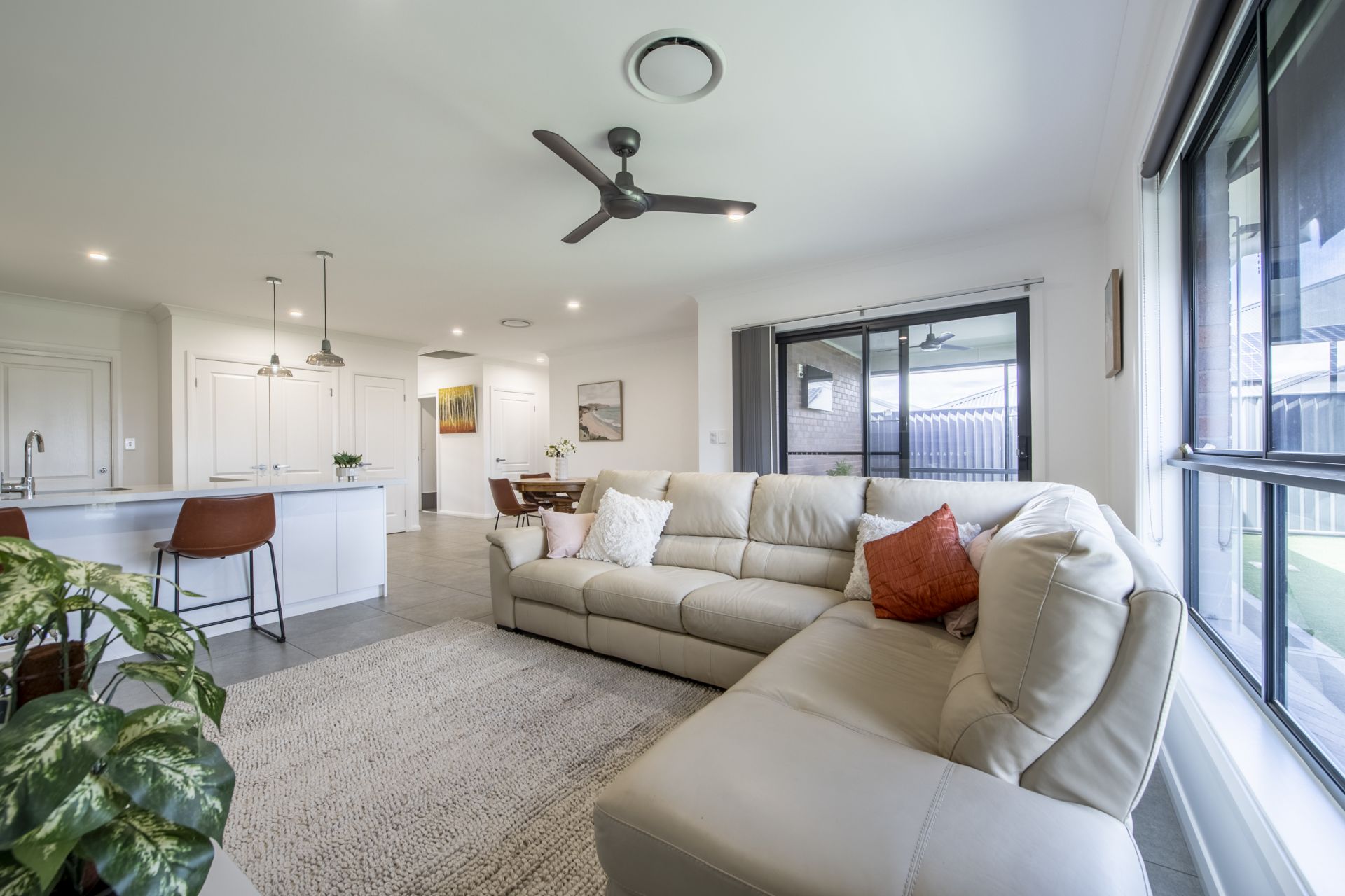 - Light filled modern interior design with neutral colour scheme